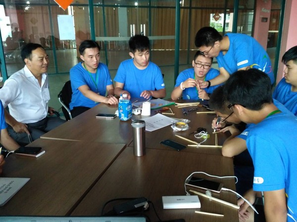 在我们休息一个中午后,便紧锣密鼓地投入到了投石机比赛的投石机制作中。在小组内同学经过多次的讨论后,终于得到了一个最佳的方案,经过不断地实践后,我们的投石机总算有了雏形,看着我们辛勤工作的成果,我们露出了欣慰的笑容。是啊,没有努力就没有成功;同时,通往成功的路也不是一帆风顺的,能有这么好的结果使我们大家齐心努力的结果!