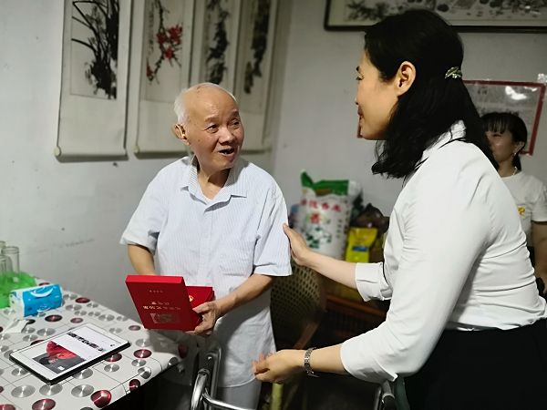 校领导走进退休老党员张树仁、洪亲民同志的家中开展慰问。校党委书记平萍和校长李娟分别为老党员颁授了荣誉奖章和慰问金,致敬为党和人民教育事业奋斗一生的党员同志,感谢老同志为党的教育事业做出的奉献,向他们致以崇高的敬意。