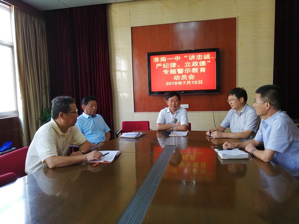 7月10日上午,淮南一中“讲忠诚、严纪律、立政德”专题警示教育动员会在勤政楼三楼会议室召开。党委书记、校长井多德主持会议,校党委班子成员参加会议。