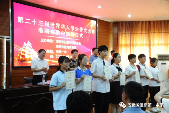 此次世界华人学生作文大赛淮南市集中颁奖仪式由淮南市归国华侨联合会、淮南市教体局主办,淮南一中承办。