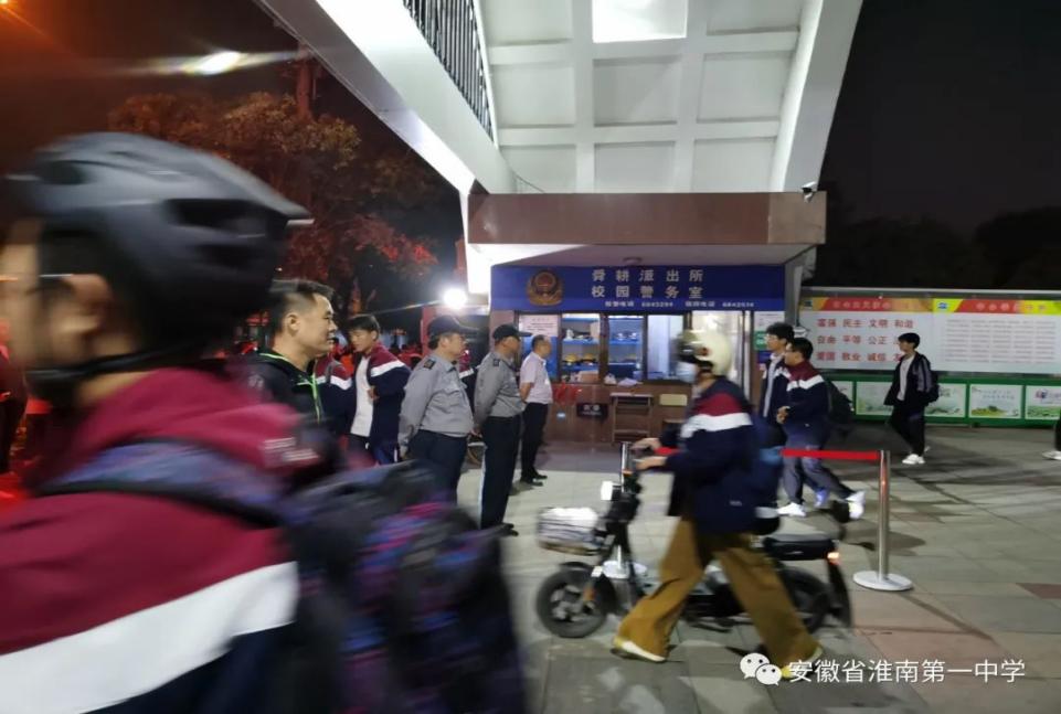 每天清晨和深夜,在淮南一中校门口,总有这样一群人特别忙碌,他们有的手持小红旗进行人车分流,有的佩戴值勤证劝导文明骑行,有的身着制式服叮嘱小心慢行,他们不辞辛劳、夜以继日、年复一年地护佑着同学们的出行安全。他们就是淮南一中护学岗,一支由公安民警、交警、学校值班同志和保卫人员共同组成的交通护学小分队。