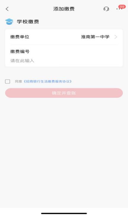 (4)扫码后进入缴费页面,输入缴费编号(即学生身份证号),勾选下方同意后,点击确定并查账,进行缴费。